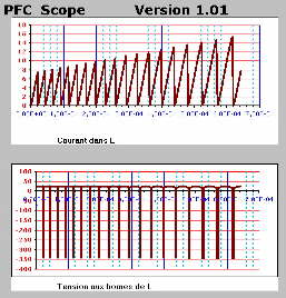 grandeurs électriques aux bornes des composants d'un PFC fonctionnant